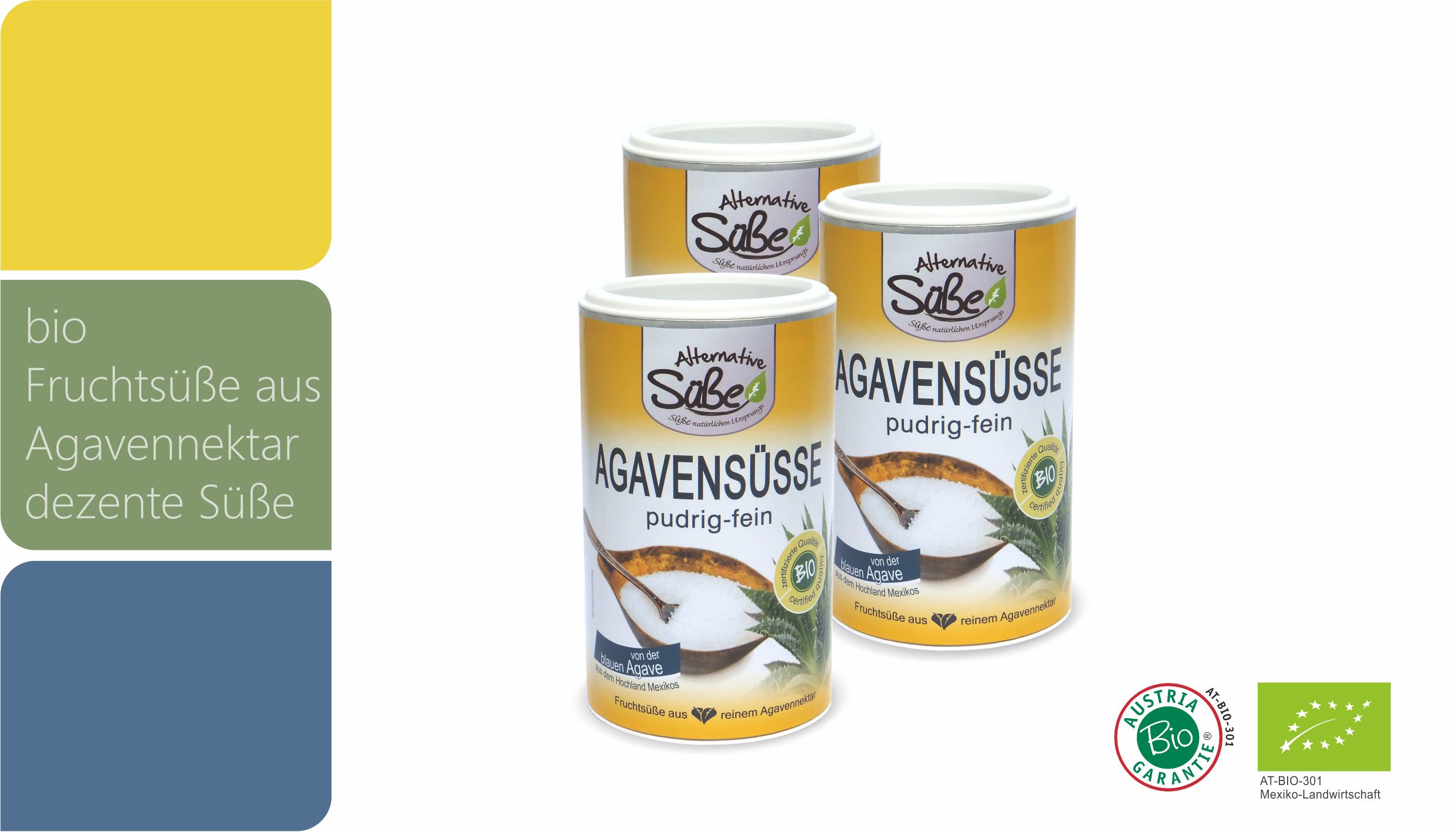 Dieser Agavensaft wird anschließend gefiltert, schonend eingedickt und durch den Zusatz von 4% Bio-Maltodextrin (Ursprung: Österreich) sprüh-getrocknet, um die pudrig-feine Agavensüße zu erhalten.
